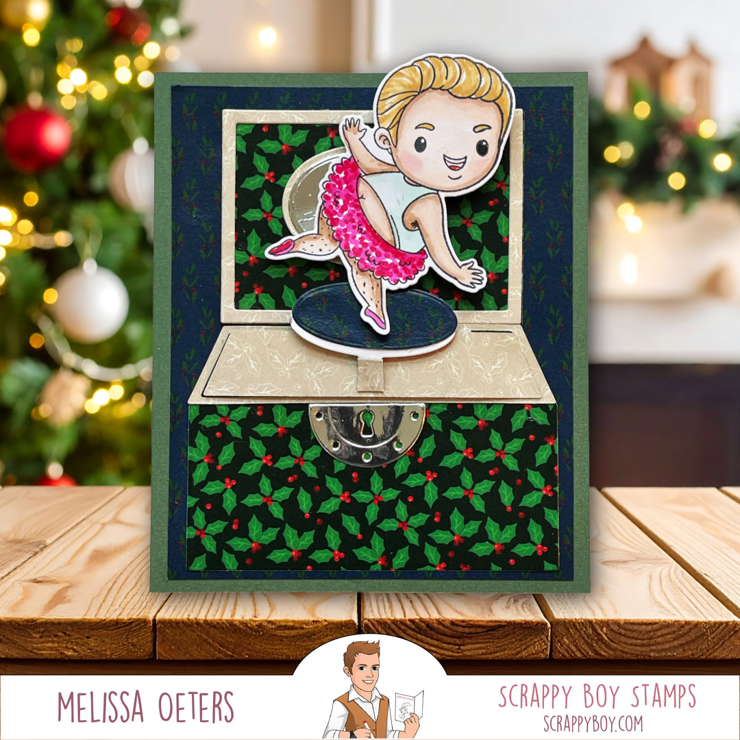 A2 Music Box Builder Die Set was designed by Nicole Silhouette exclusively for Scrappy Boy Stamps. It coordinates with The Butt Cracker Fairies Release. These dies are designed to fit on your card base to build an adorable flat music box that you can add your image too. This is not a 3D die.