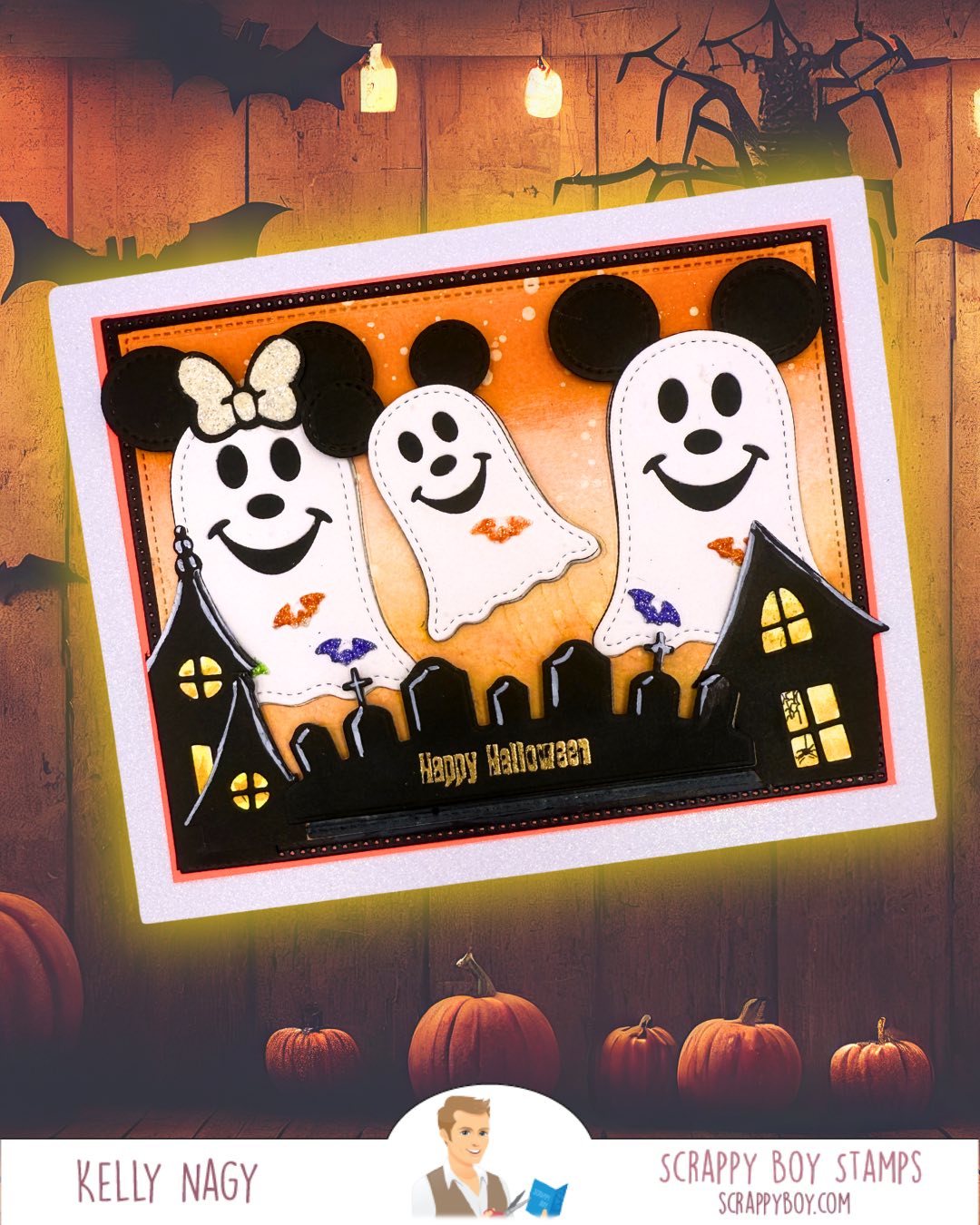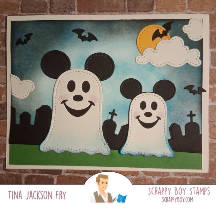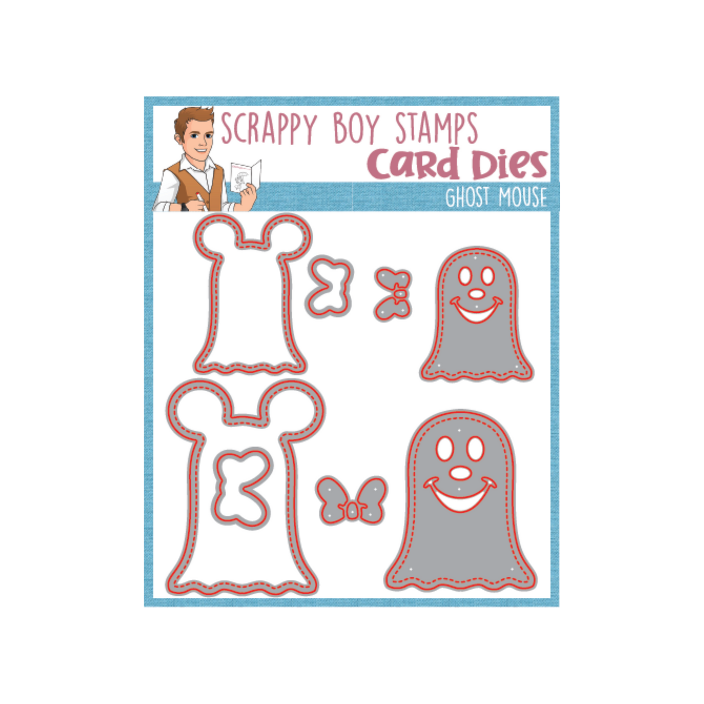 Ghost Mouse Die Set was designed by Nicole Silhouette exclusively for Scrappy Boy Stamps. It has 2 differently sized ghosts measuring: