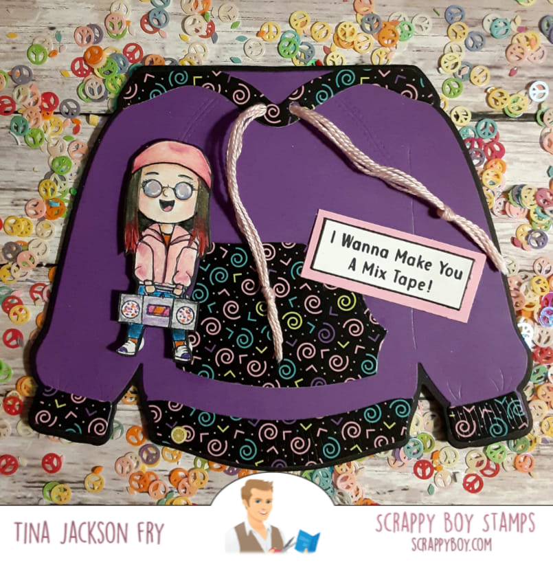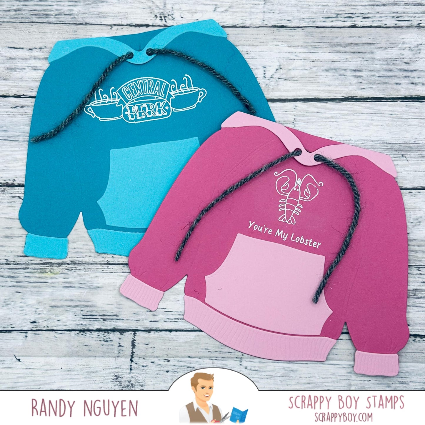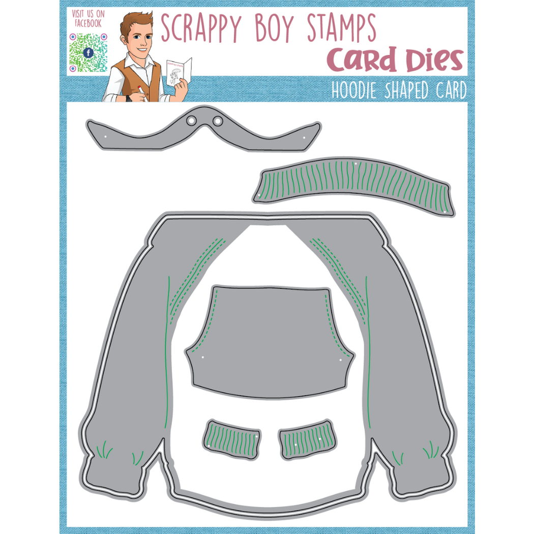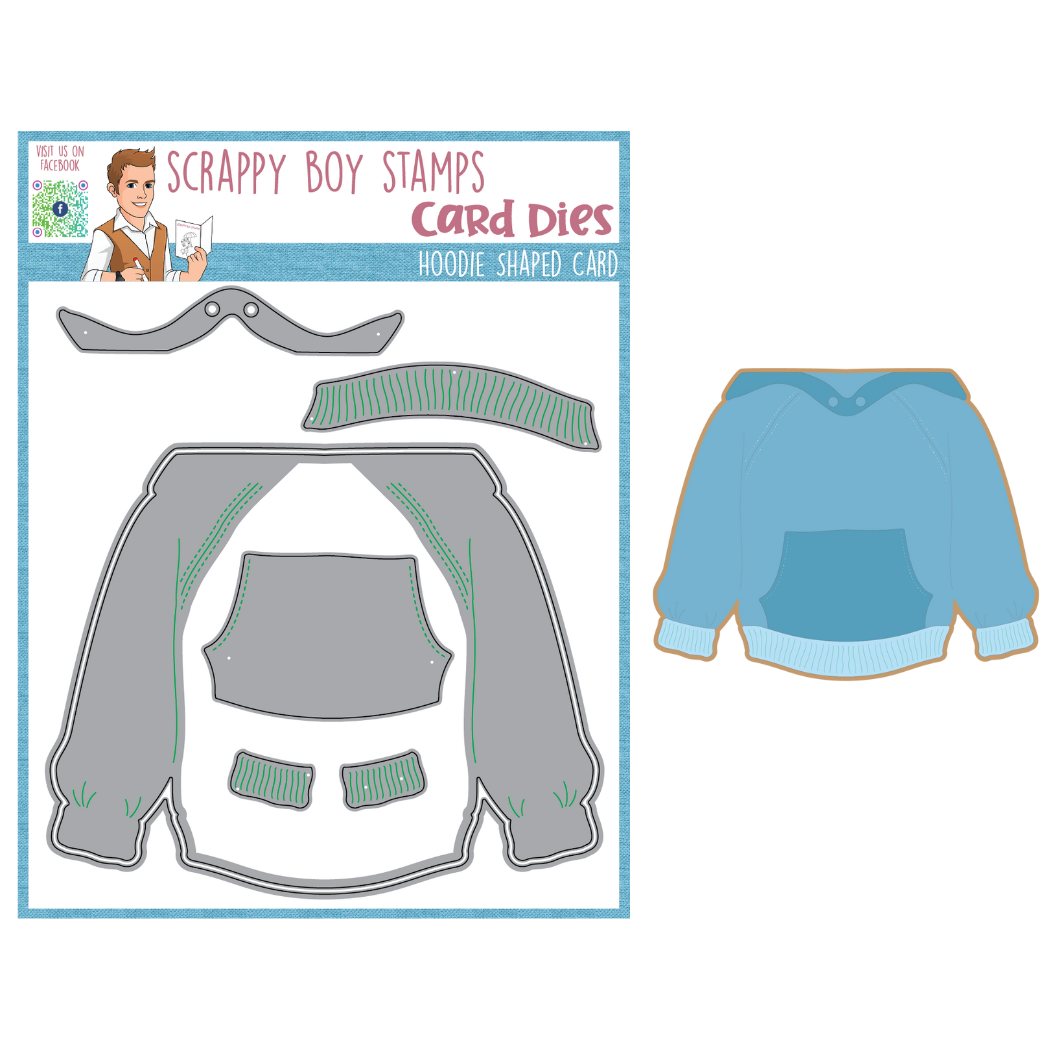 Hoodie Shaped Card Die Set was designed exclusively for Scrappy Boy Stamps by Nicole Silhouette! This die set has 7 dies to create a card or mini album. You can see an assembly tutorial on our YouTube channel.