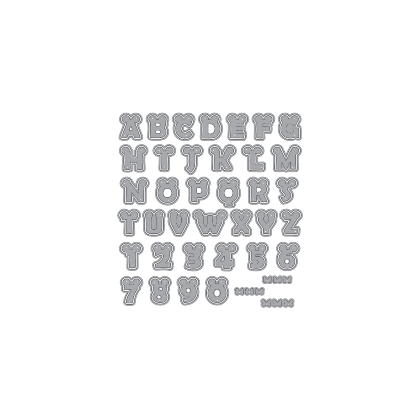 The Mouse Ears Alphabet & Numbers Die Set was designed by Nicole Silhouette exclusively for Scrappy Boy Stamps.