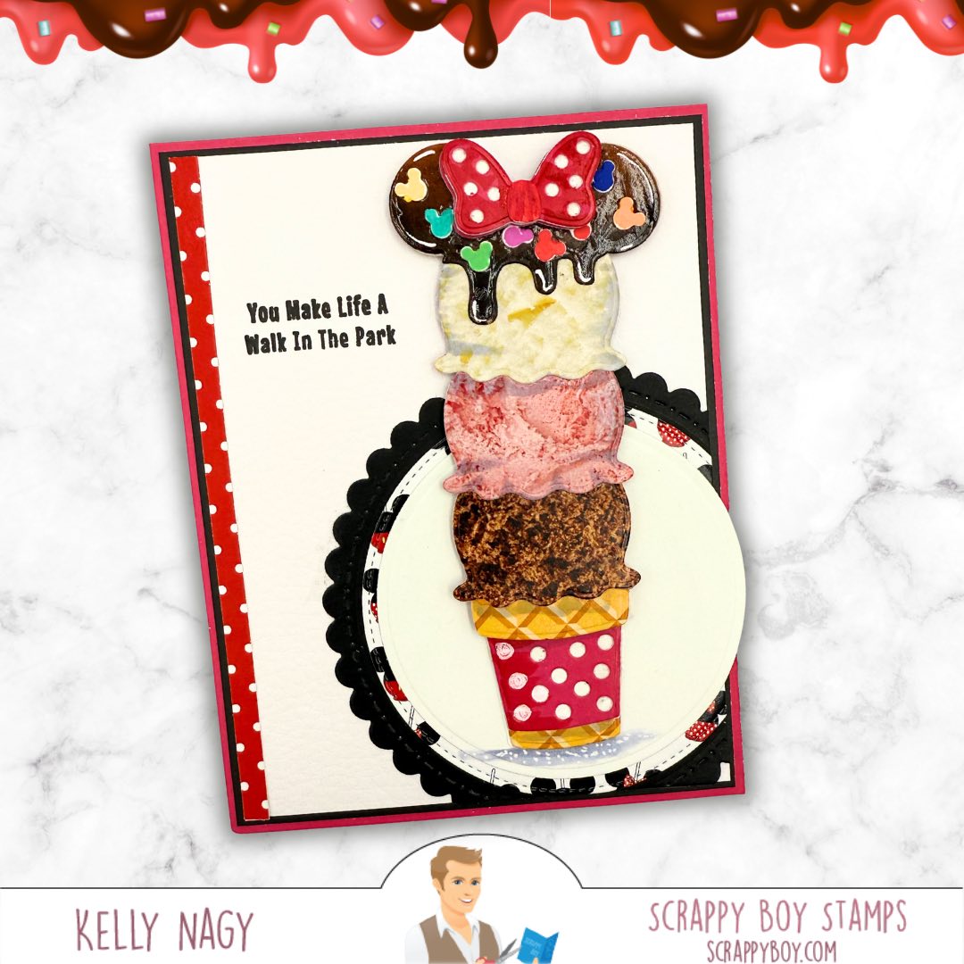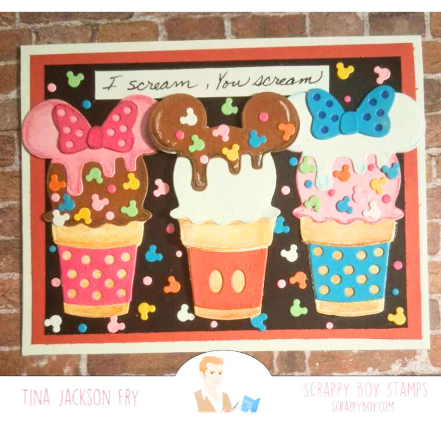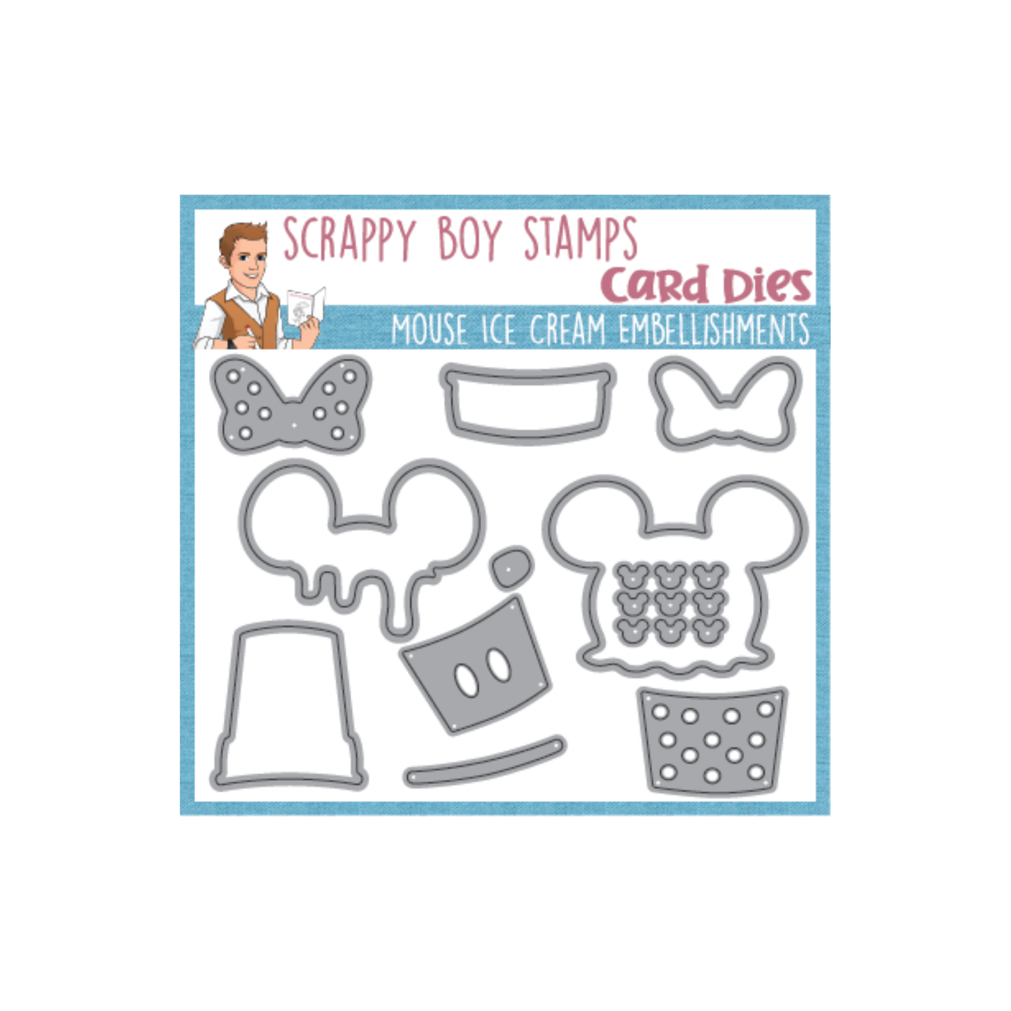 Mouse Ice Cream Embellishments Die Set was designed by Nicole Silhouette exclusively for Scrappy Boy Stamps. Use these adorable dies to embellish mini albums, scrapbook pages and cards!