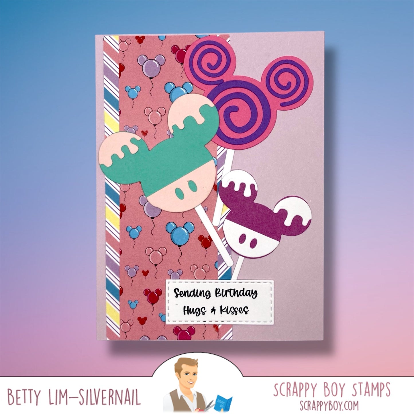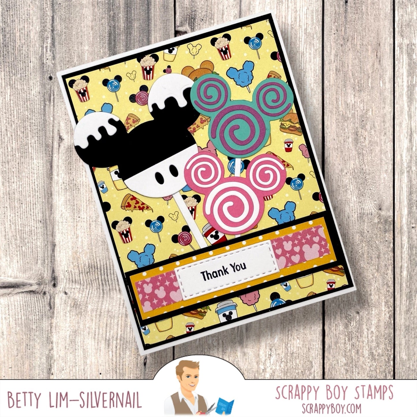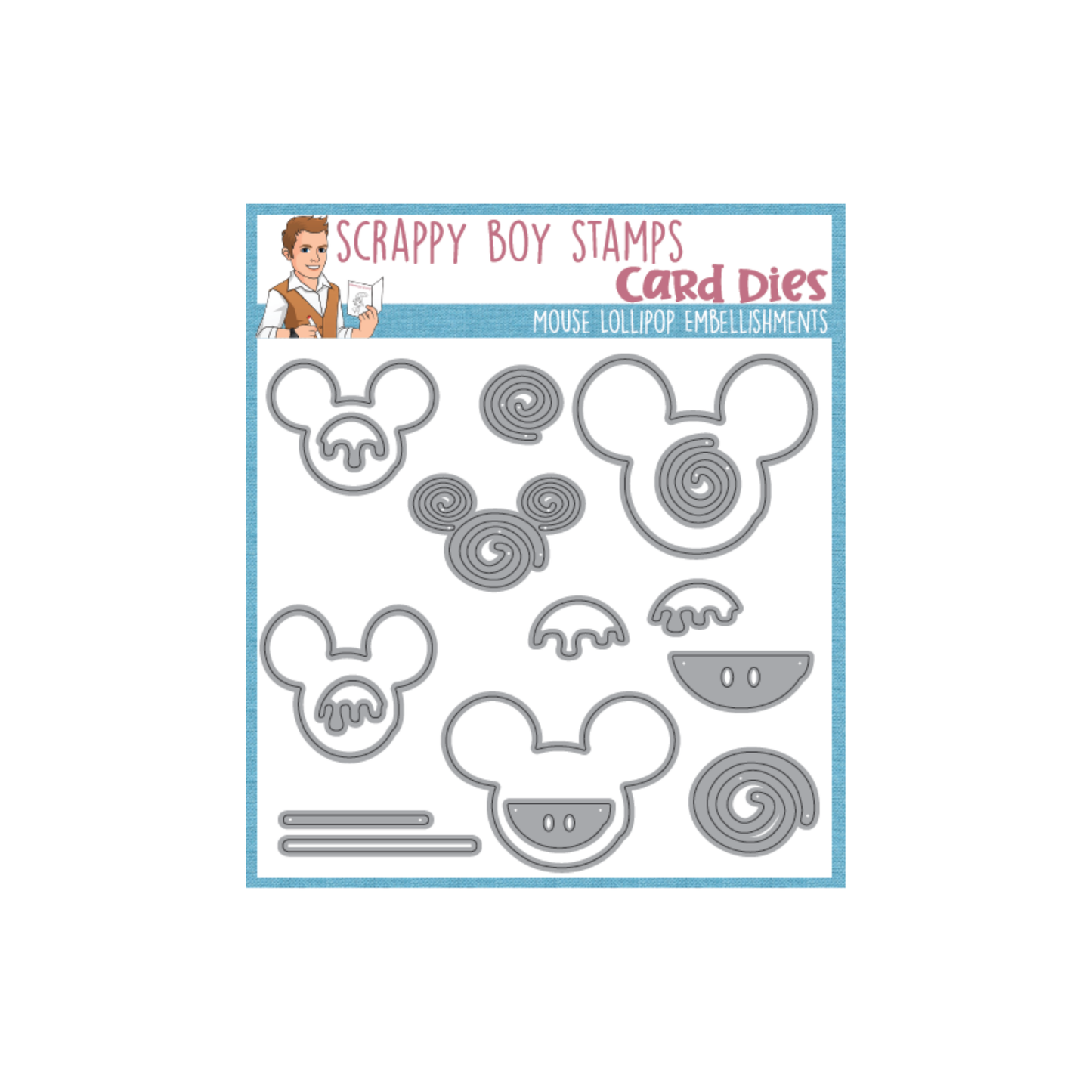 Mouse Lollipop Embellishments Die Set was designed by Nicole Silhouette exclusively for Scrappy Boy Stamps. Use these adorable dies to embellish mini albums, scrapbook pages and cards!