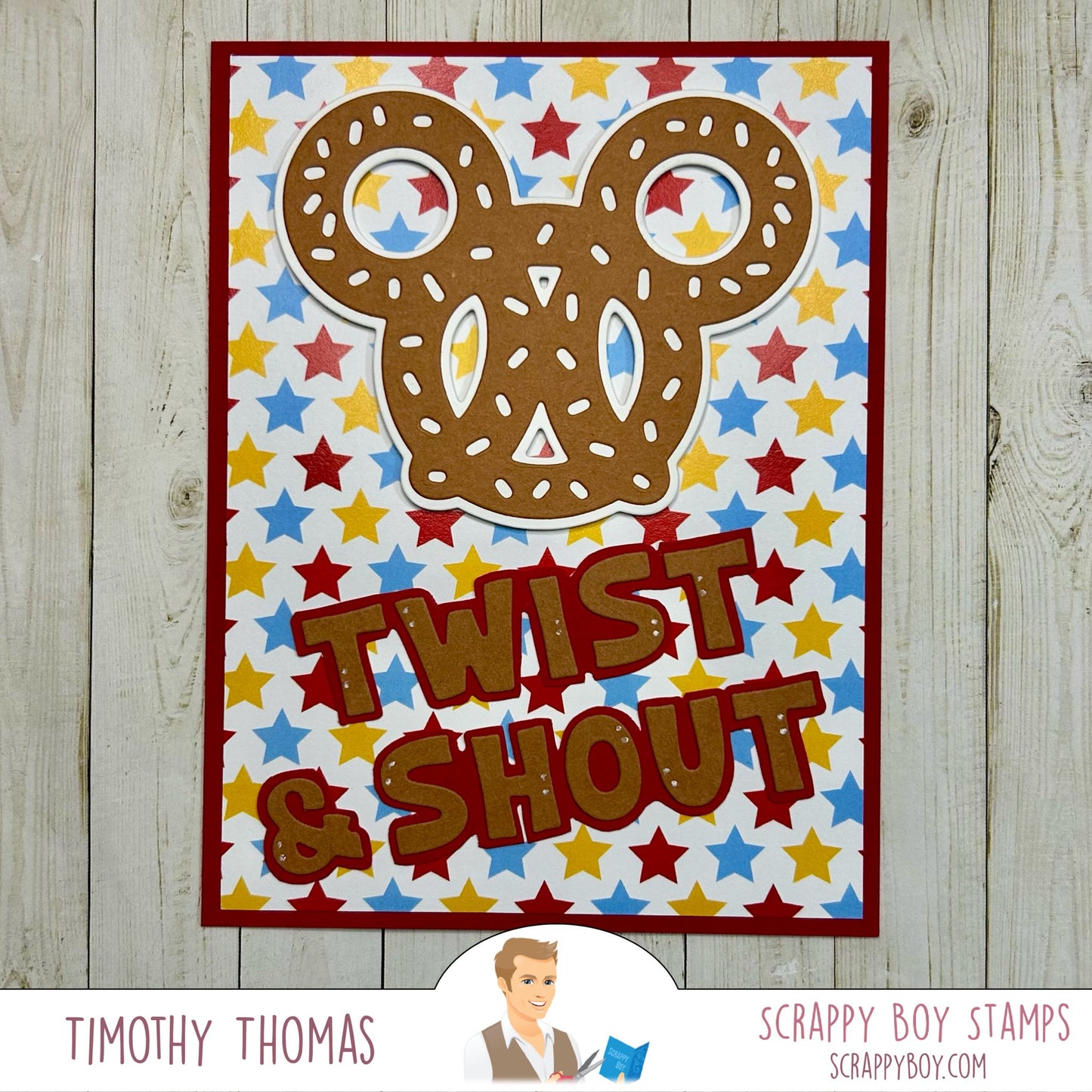 Mouse Pretzel Embellishment Die Set was designed by Nicole Silhouette exclusively for Scrappy Boy Stamps. Use these adorable dies to embellish mini albums, scrapbook pages and cards! The finished project measures just over 3.75" wide x just over 3" tall.