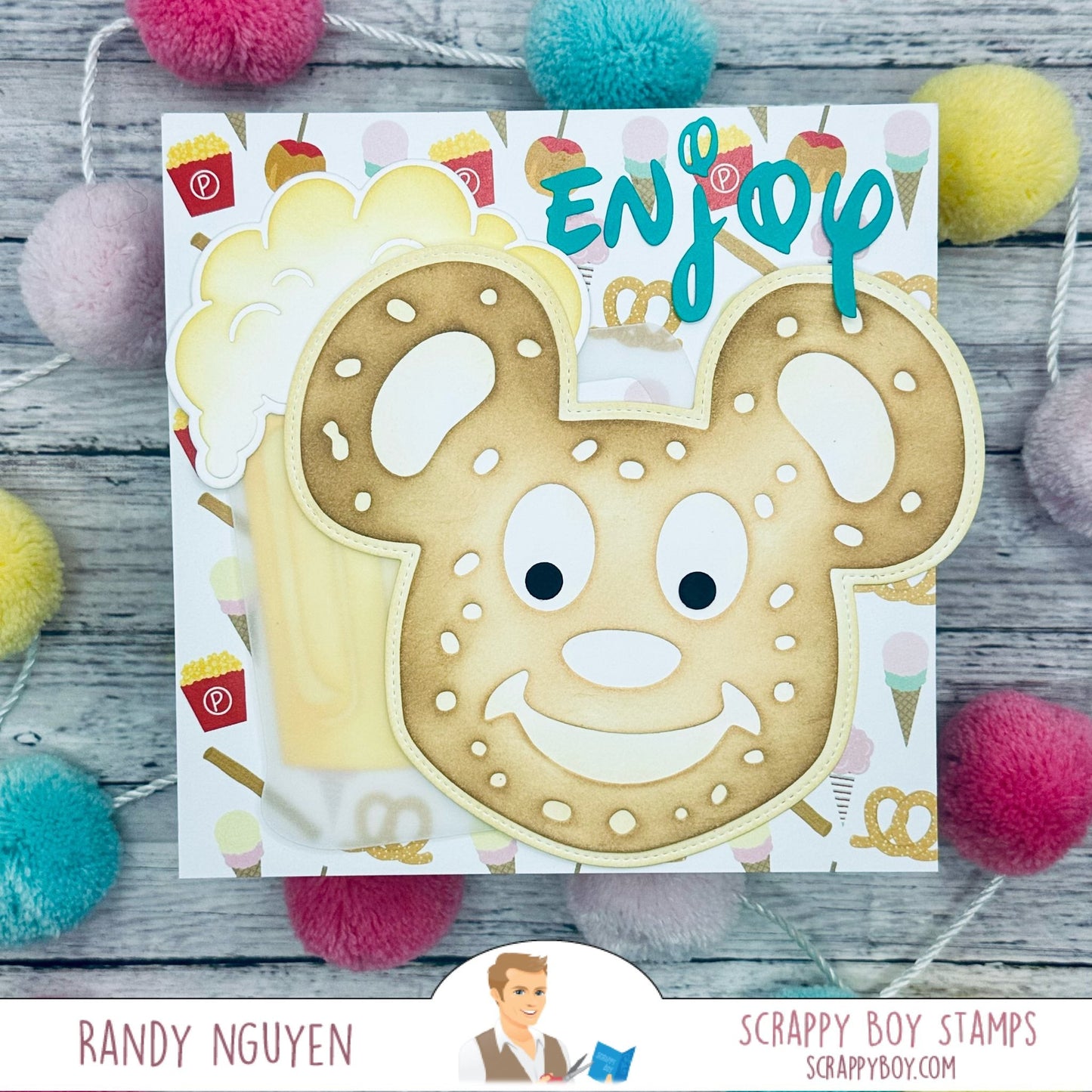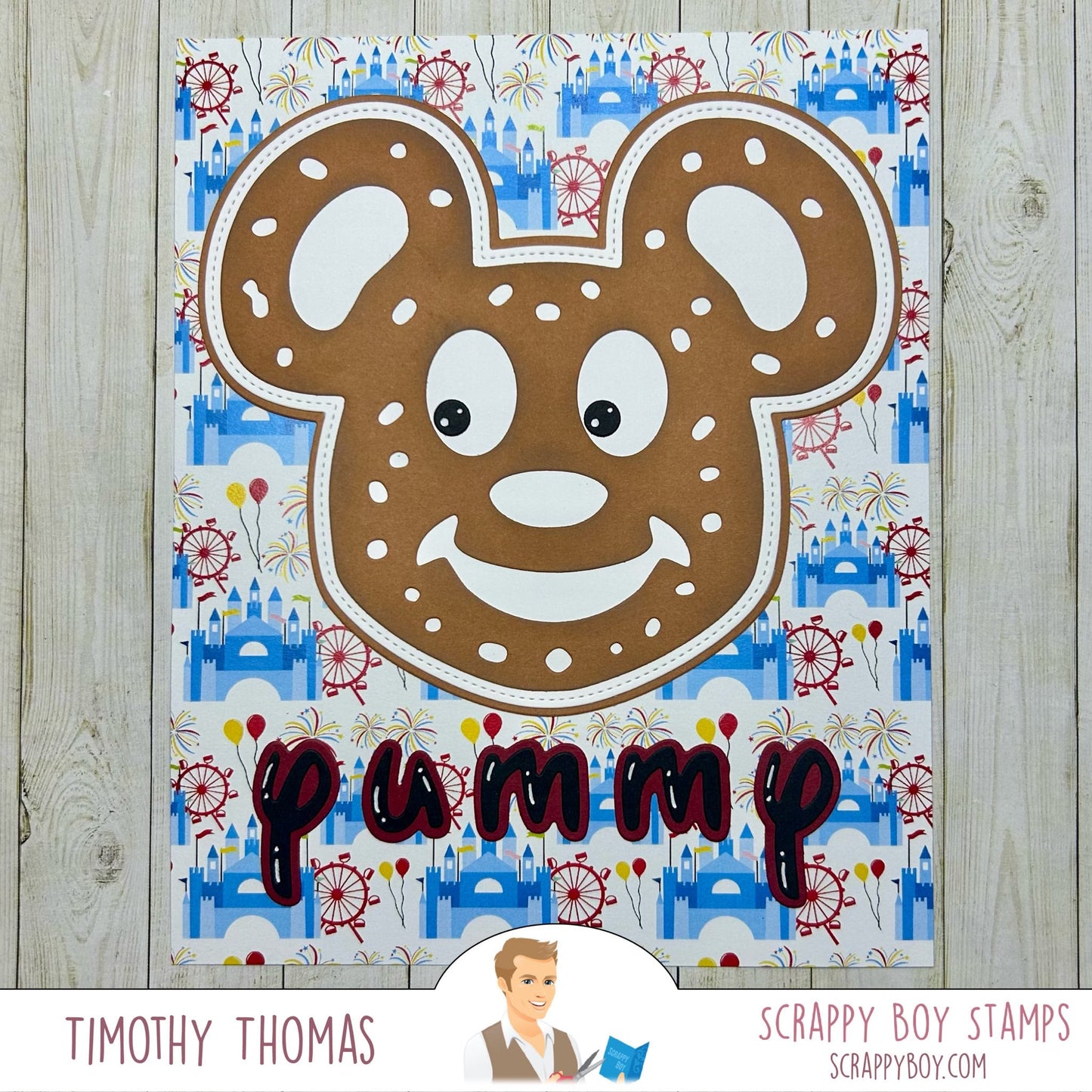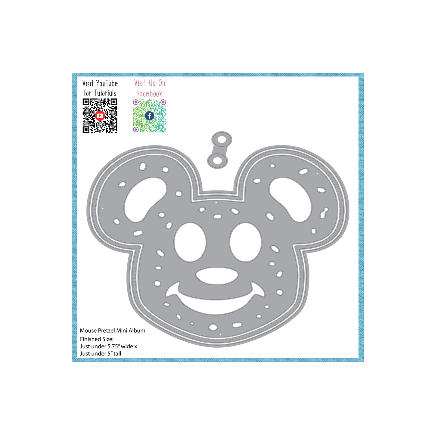 Mouse Pretzel Mini Album Die Set was designed by Nicole Silhouette exclusively for Scrappy Boy Stamps. The finished project measures just under 5.75" wide x just under 5" tall.