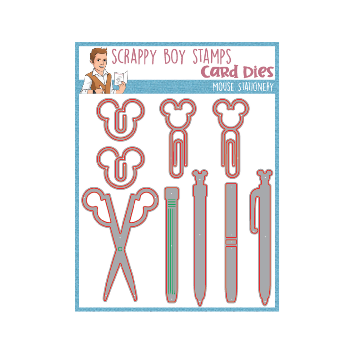 This Mouse Stationery Die set was designed by Nicole Silhouette exclusively for Scrappy Boy Stamps.