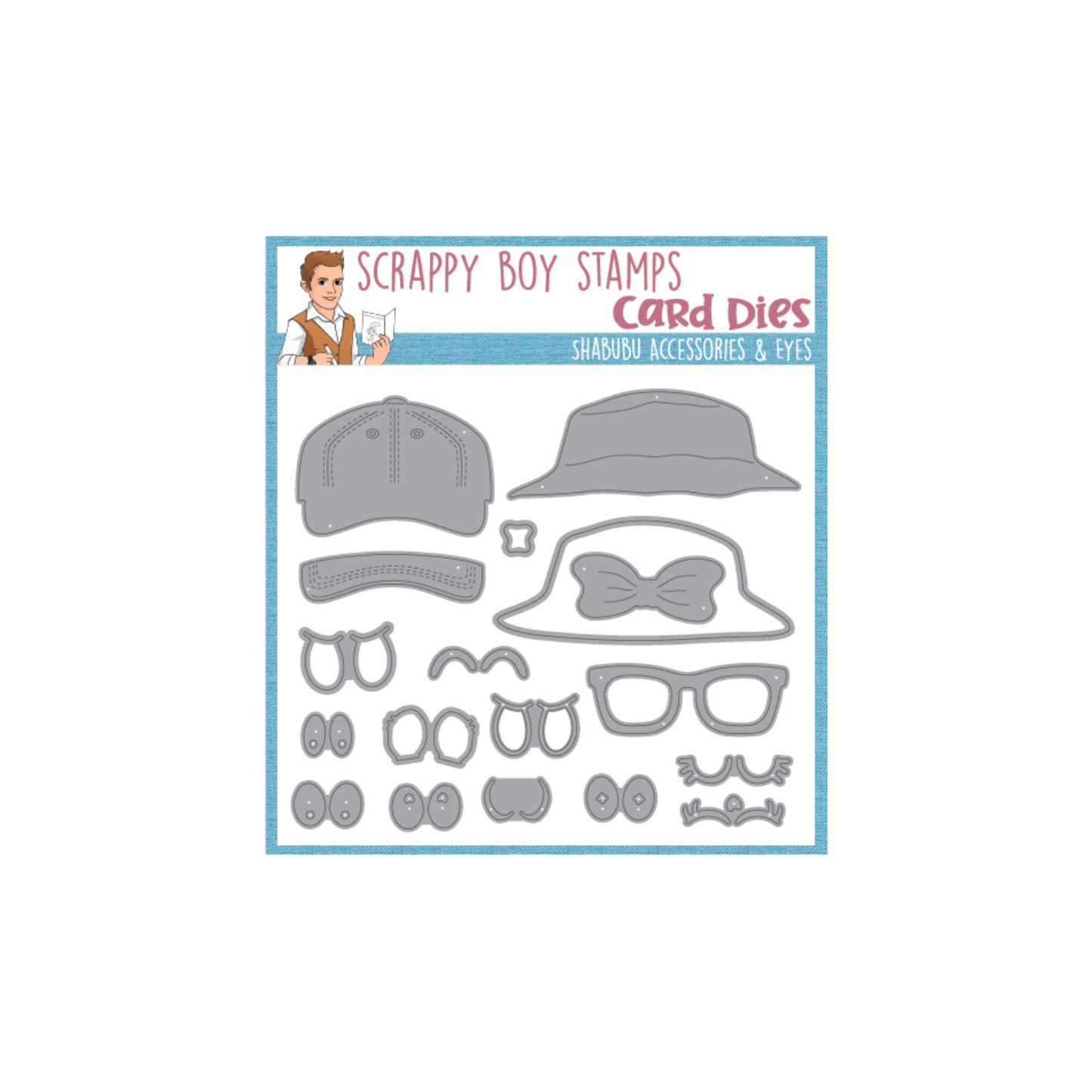 Shabubu Accessories and Eyes Die Set fits the Shabubu Stand Up Die set, & the Shabubu Sit Down Die set. Check out the Faux Fur 6x9 paper pack!