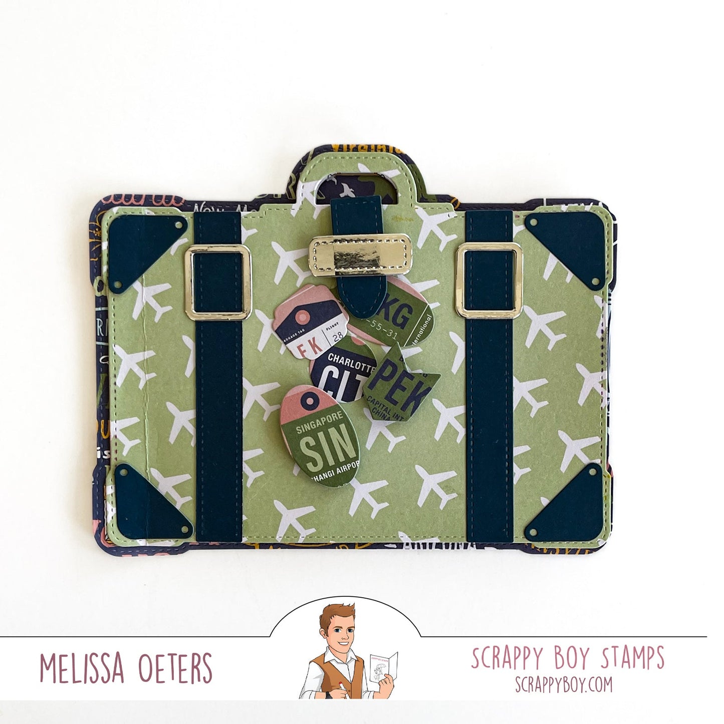 This adorable Vintage Suitcase Mini Album Die can be used to make a super cute mini album. Cut out, the largest die measures just over 5.5" wide by just over 4.25" tall. Use the smaller solid piece as the base of a decorative cover and inside pages, use the other pieces to build the look of your Vintage Suitcase!