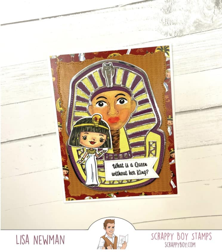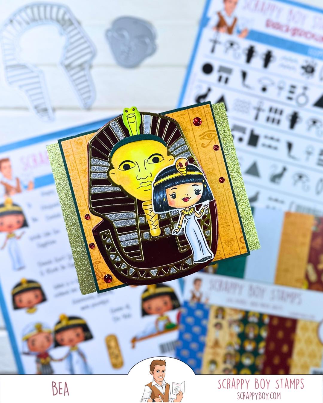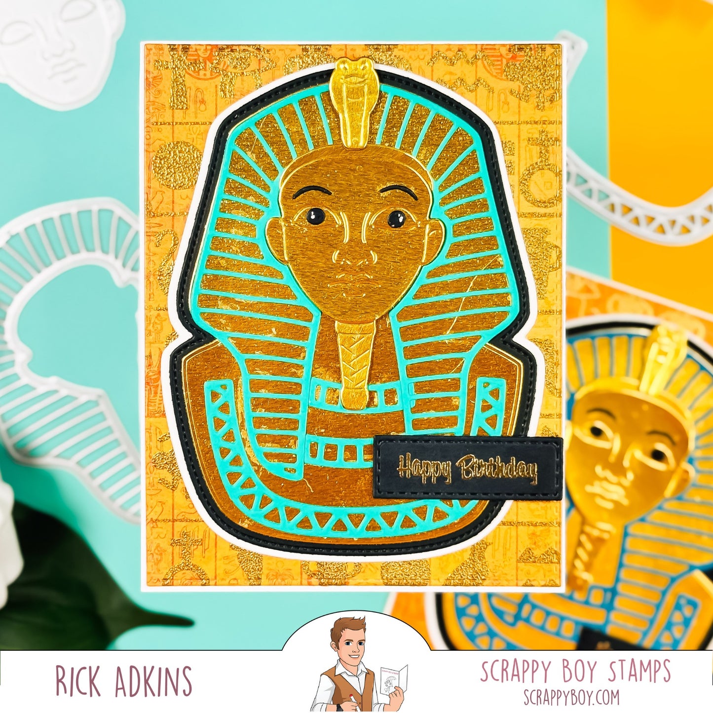 Egyptian Mask Card - Mini Album Die is a 12-piece die set designed by Nicole Silhouette for the Cleopatra Release. The finished size of the mask is just over 3.75" wide x just over 5" tall and fits in an A2 envelope.