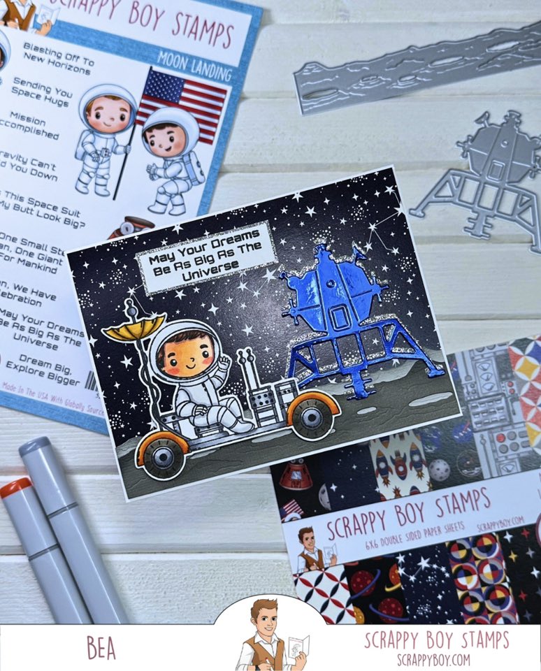 This set, Moon Landing Scene Builder Die coordinates with the Moon Landing release! Check out the I Want It All Bundle for this set!