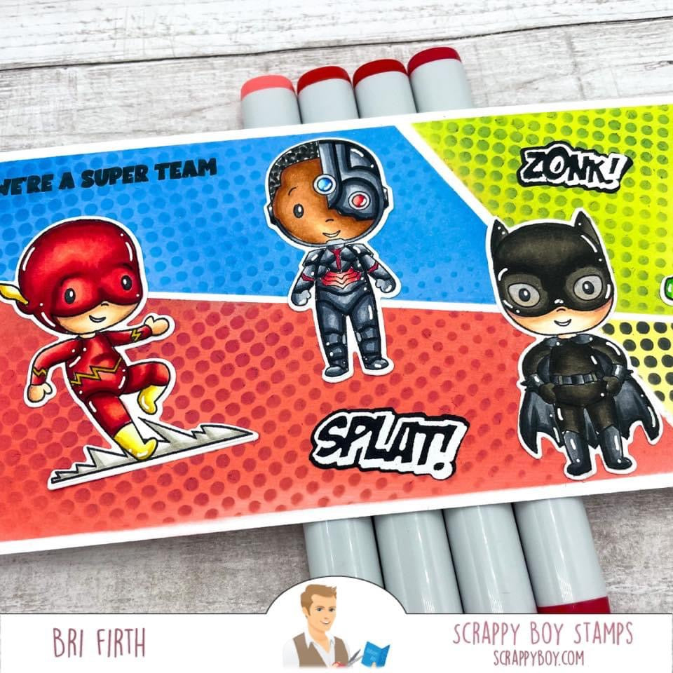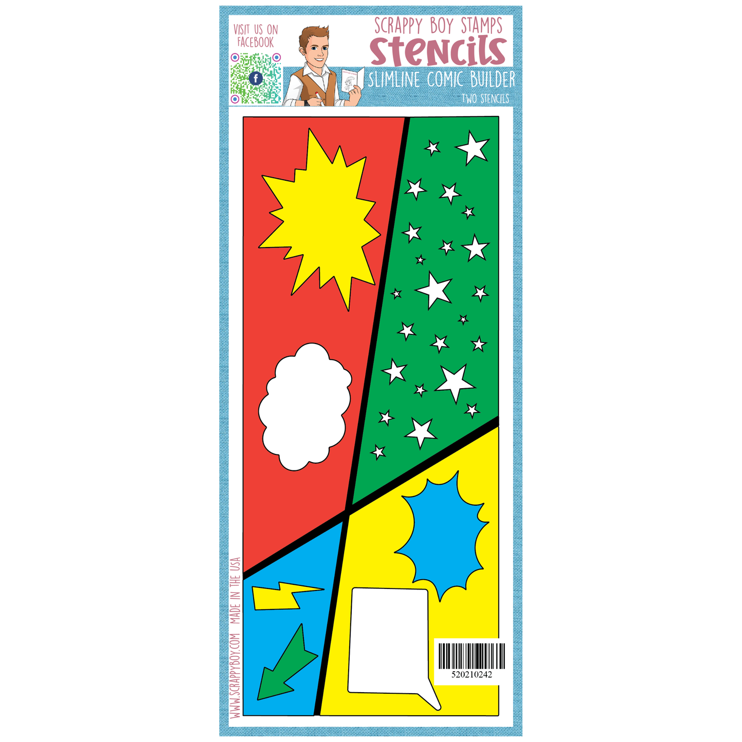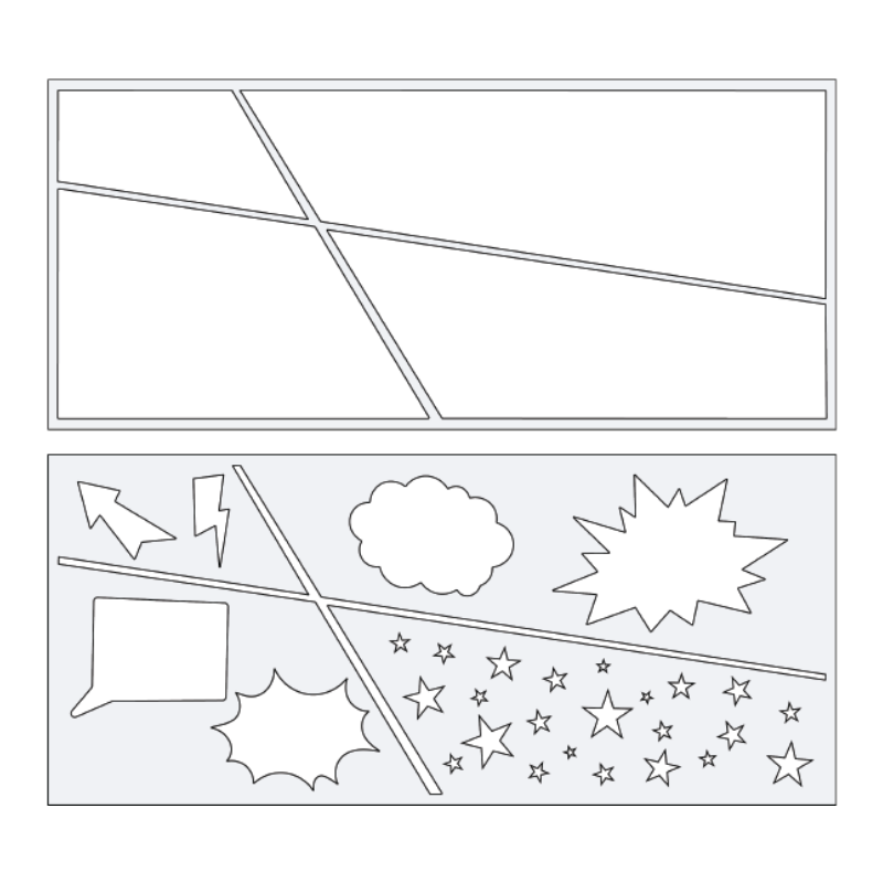 Comic Builder Slimline 2 piece stencil coordinates with the Superhero Release. This stencil measures 4"x 9". Don't forget to check out the coordinating Halftone Dot Stencil, 6x6 paper pack, and Slimline paper pack!