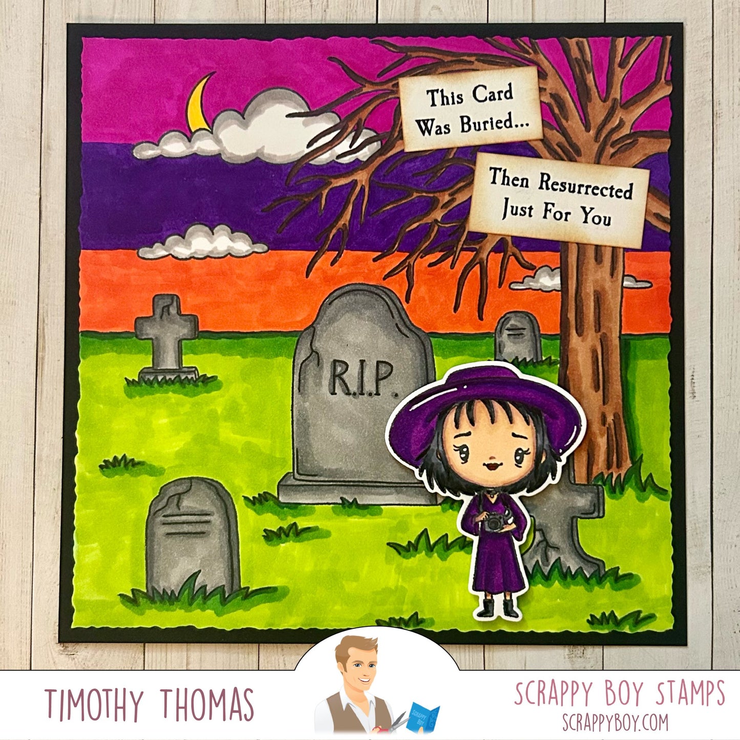 This cute 6x6 stamp set, Graveyard Background Stamp has 1 stamp, and coordinates with our Trickster Ghost Release. Remember to check out the coordinating stamp set, Trickster Ghost, paper packs & Marquee Sign die! If you have to have it all, check out the I Want It All Bundle for the Trickster Ghost Release!