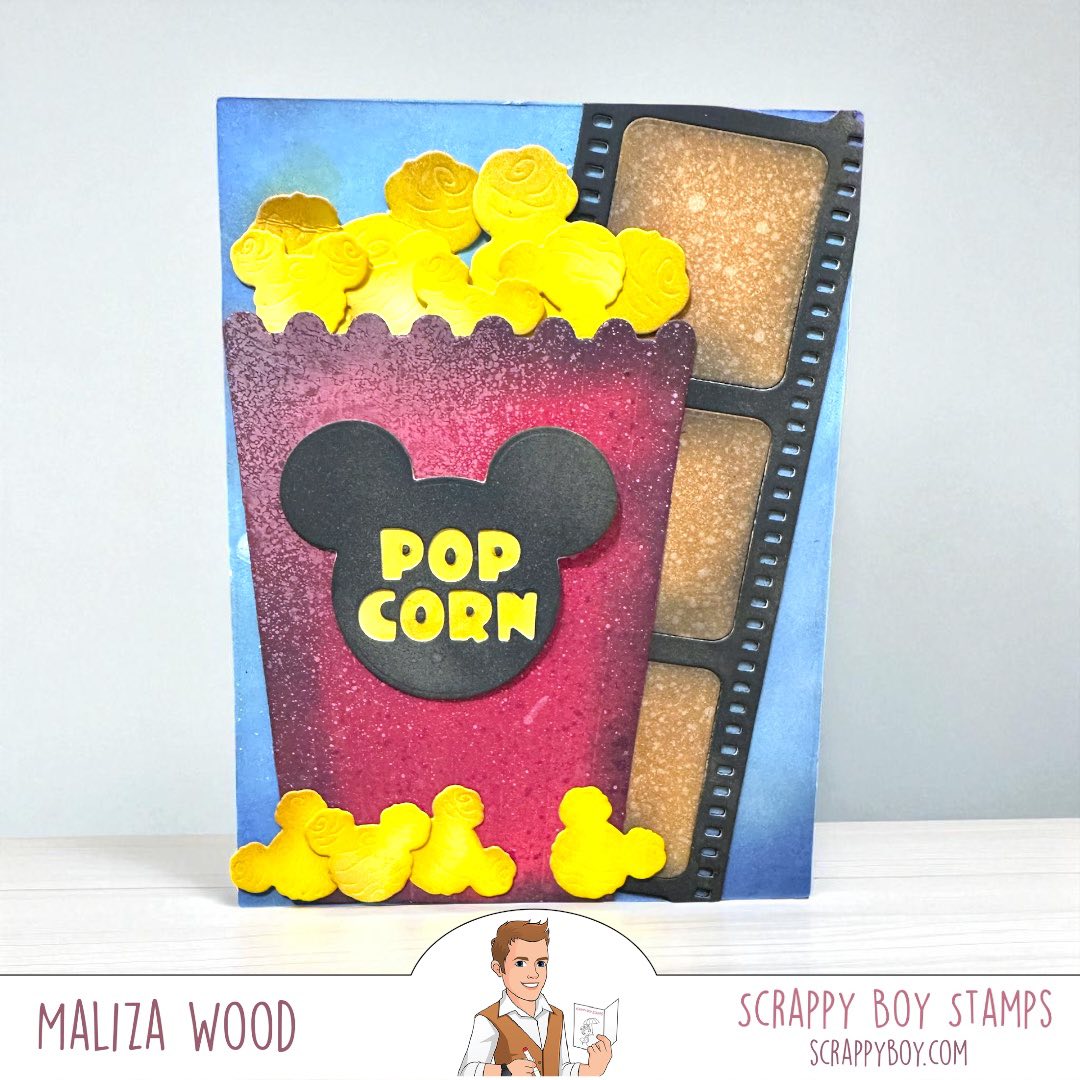 3D Mouse Popcorn Box Die Set was designed by Nicole Silhouette exclusively for Scrappy Boy Stamps. Use these adorable dies to build a 3D popcorn box, embellish mini albums, scrapbook pages and cards! The finished project measures just over 4" tall. You can see a video tutorial on our YouTube Channel. You can use the Mouse Cotton Candy Embellishment Die to create popcorn!