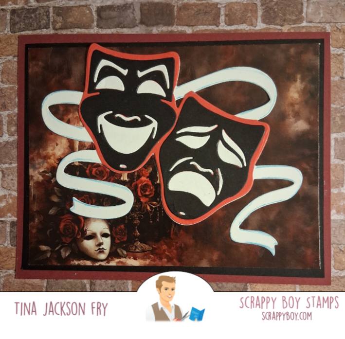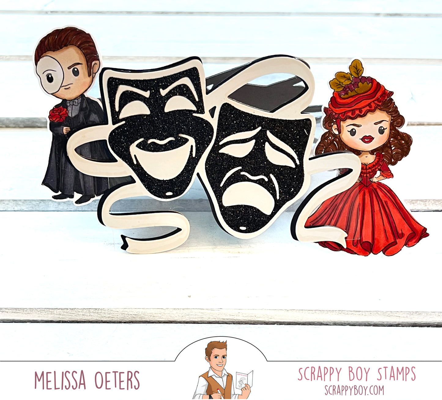 Comedy and Tragedy Mask Mini Album/Card Die Set was designed by Nicole Silhouette exclusively for Scrappy Boy Stamps. It coordinates with The Phantom Release.