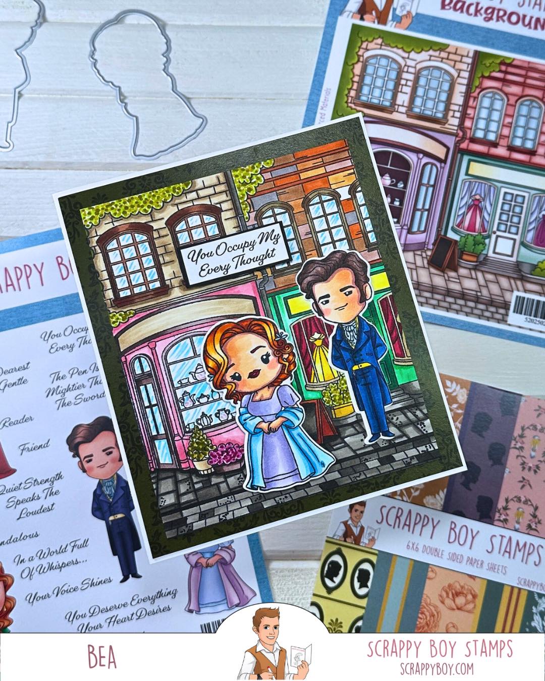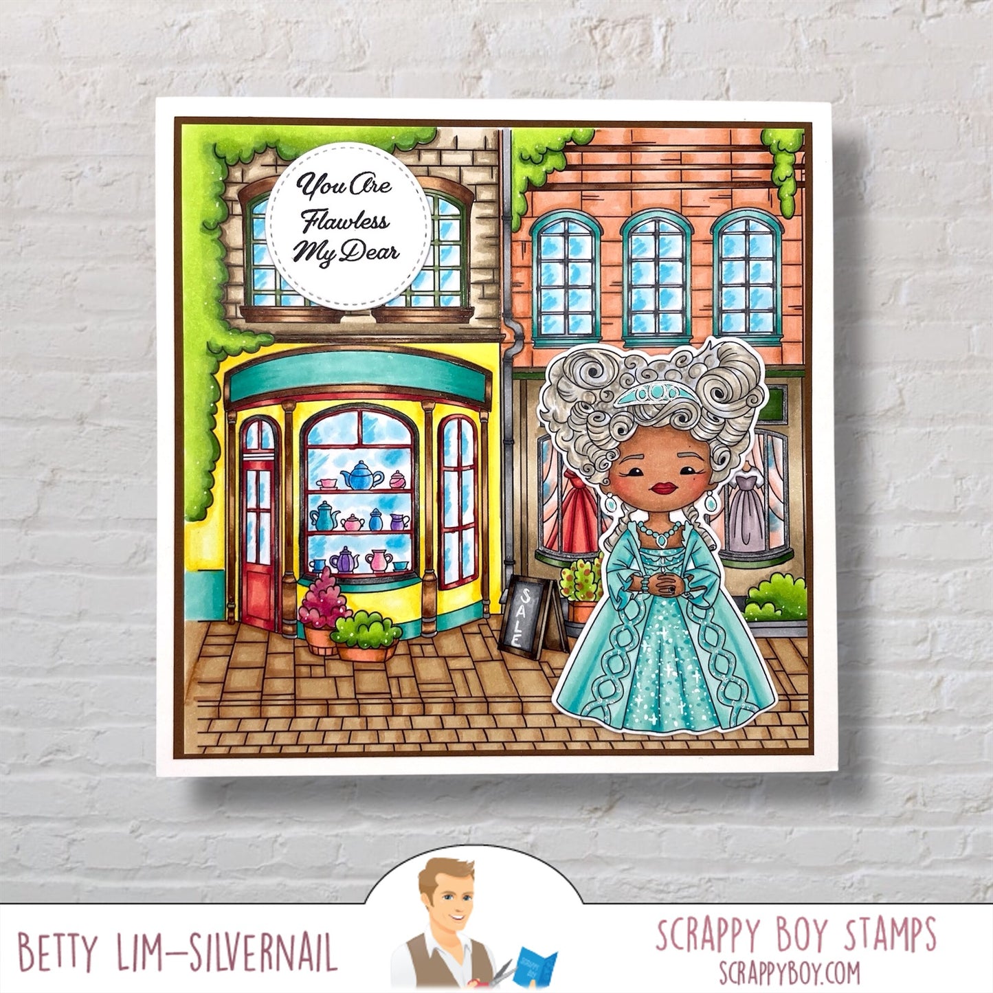 This cute 6x6 stamp set, Fancy Shops Background Stamp, has 1 stamp and coordinates with our Author & The Queen Release. Remember to check out the coordinating stamp Sets, The Author, The Queen, paper packs & word die! If you have to have it all, check out the I Want It All Bundle for the Author & The Queen Release!