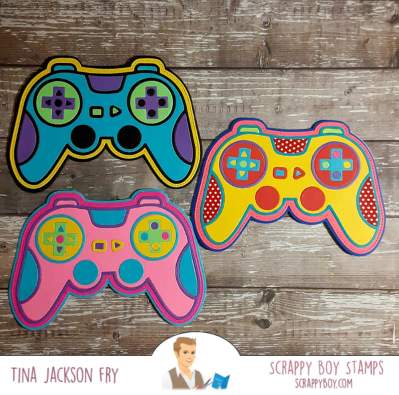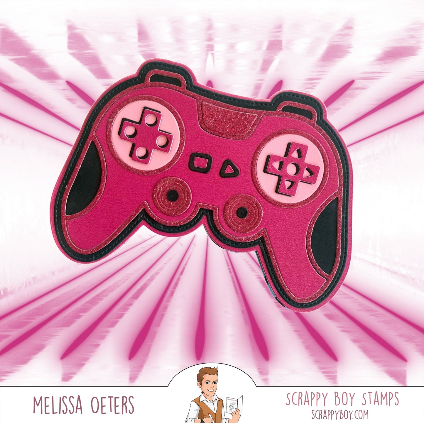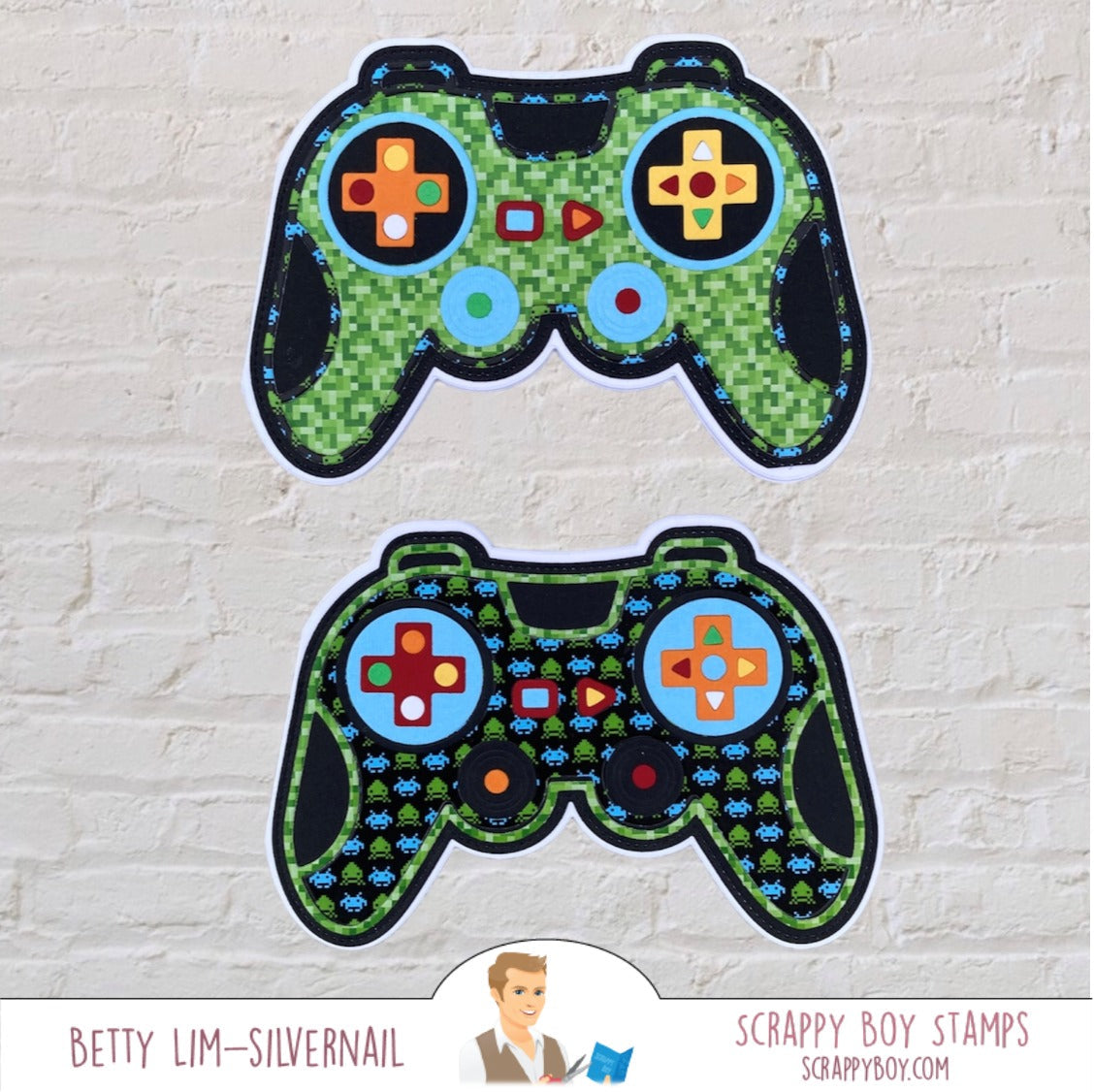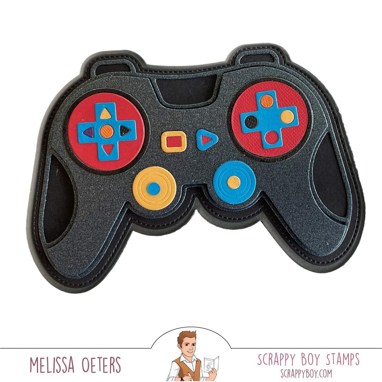 This adorable Game Controller Shaped die coordinates with the Cute Girls Fun & Games Release. You can use this die to make a mini album or a shaped card by partially cutting the largest die on a creased piece of cardstock. Finished size measures just under 5.5" wide by just over 3.75" tall. Use the largest layer as your album covers or card base, use the stitched layer as a decorative cover or inside pages, and use the other pieces to build the look of your game controller.