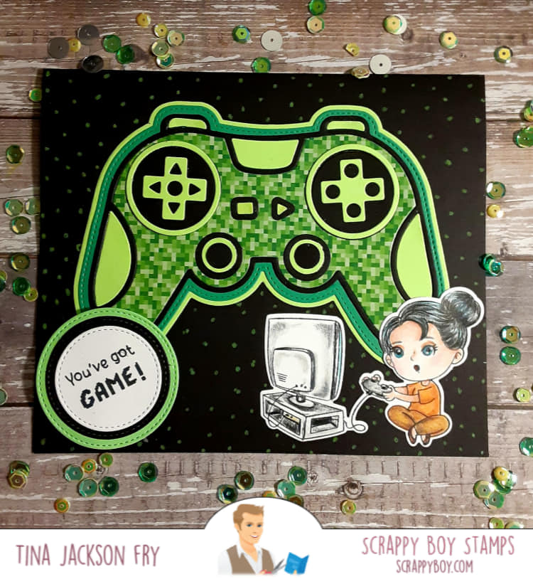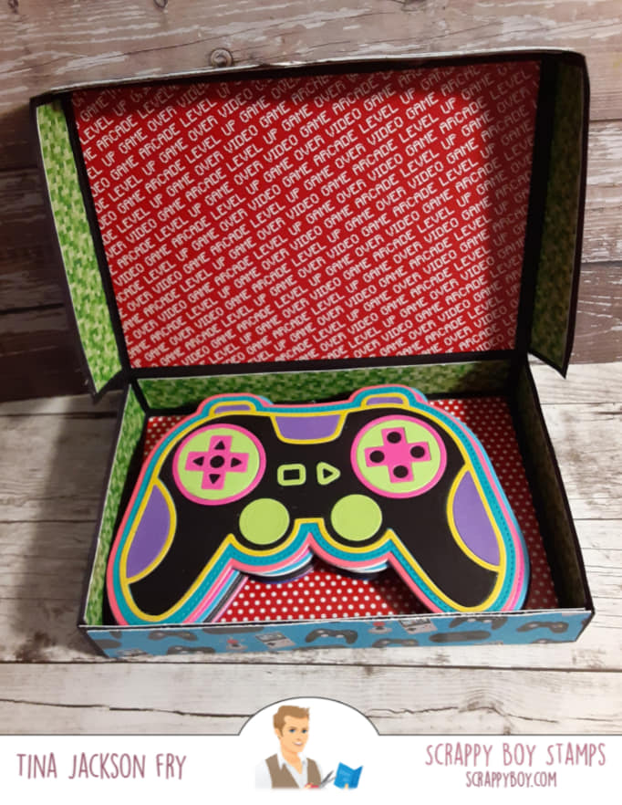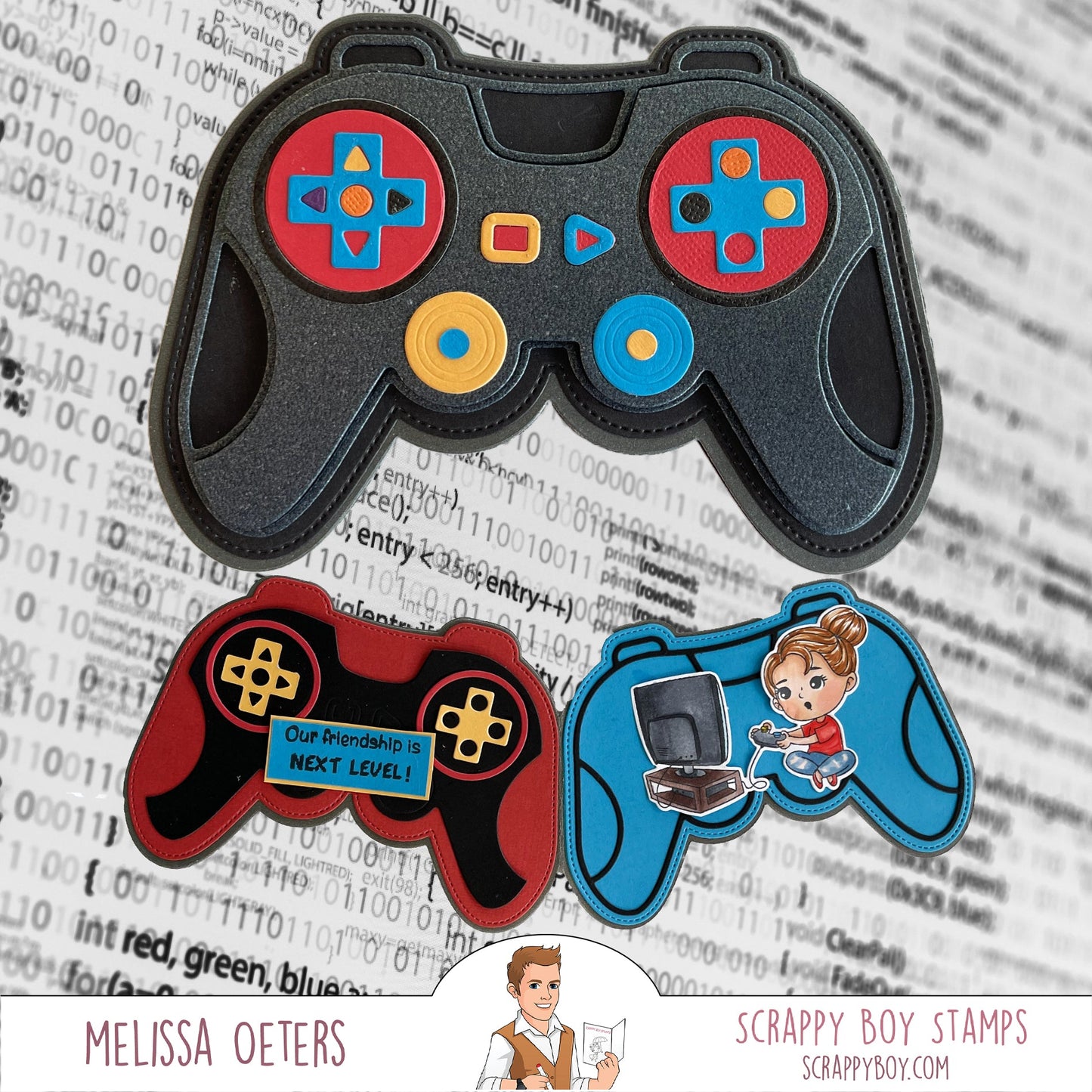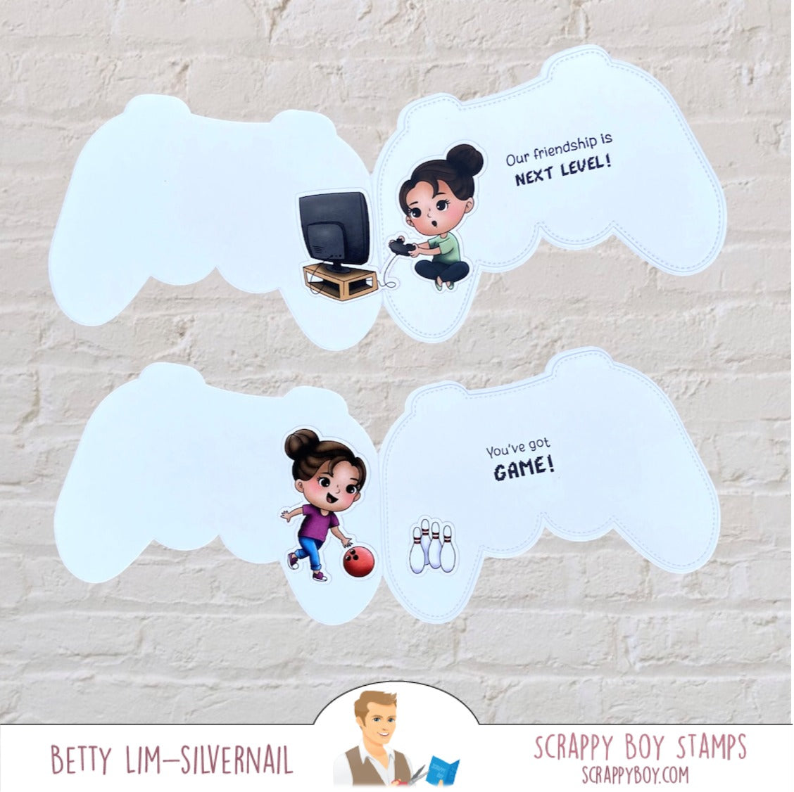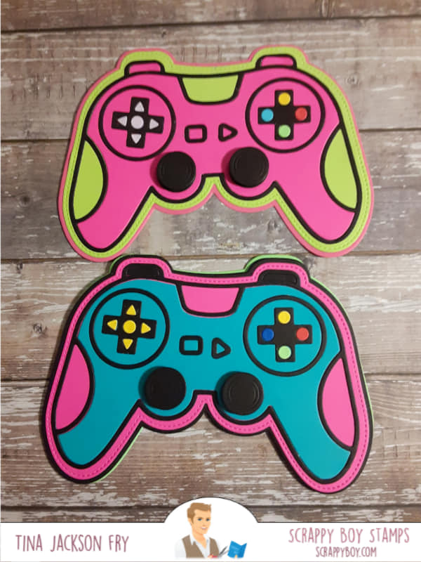 This adorable Game Controller Shaped die coordinates with the Cute Girls Fun & Games Release. You can use this die to make a mini album or a shaped card by partially cutting the largest die on a creased piece of cardstock. Finished size measures just under 5.5" wide by just over 3.75" tall. Use the largest layer as your album covers or card base, use the stitched layer as a decorative cover or inside pages, and use the other pieces to build the look of your game controller.