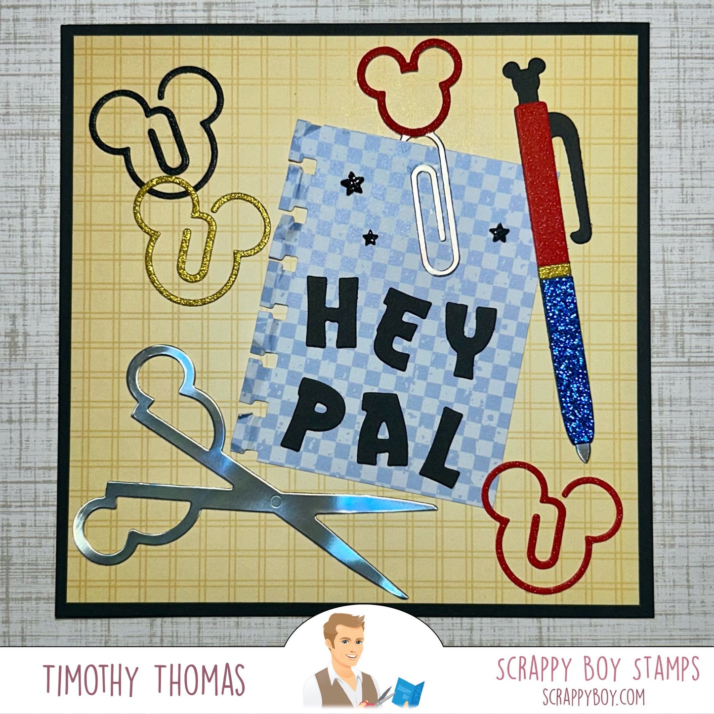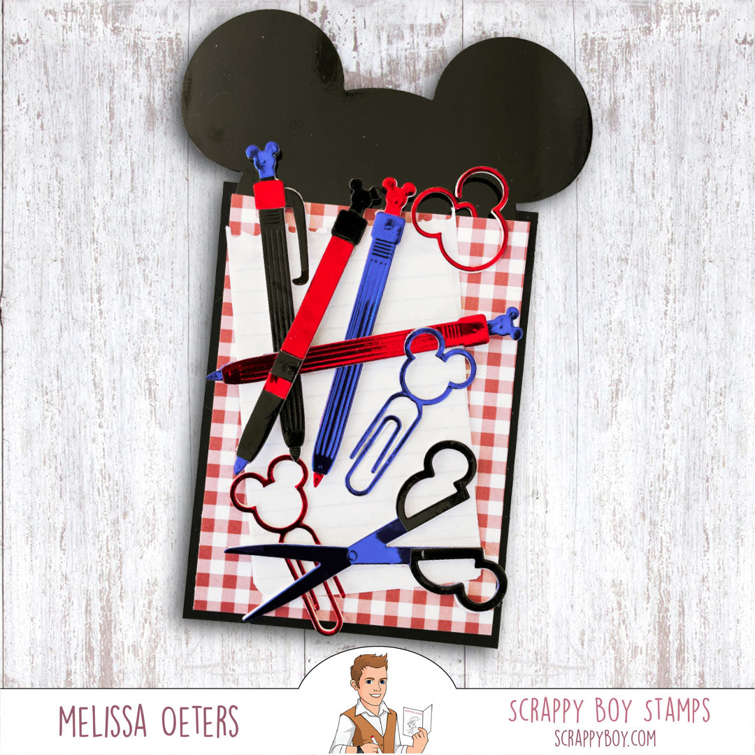 This Mouse Stationery Die set was designed by Nicole Silhouette exclusively for Scrappy Boy Stamps.